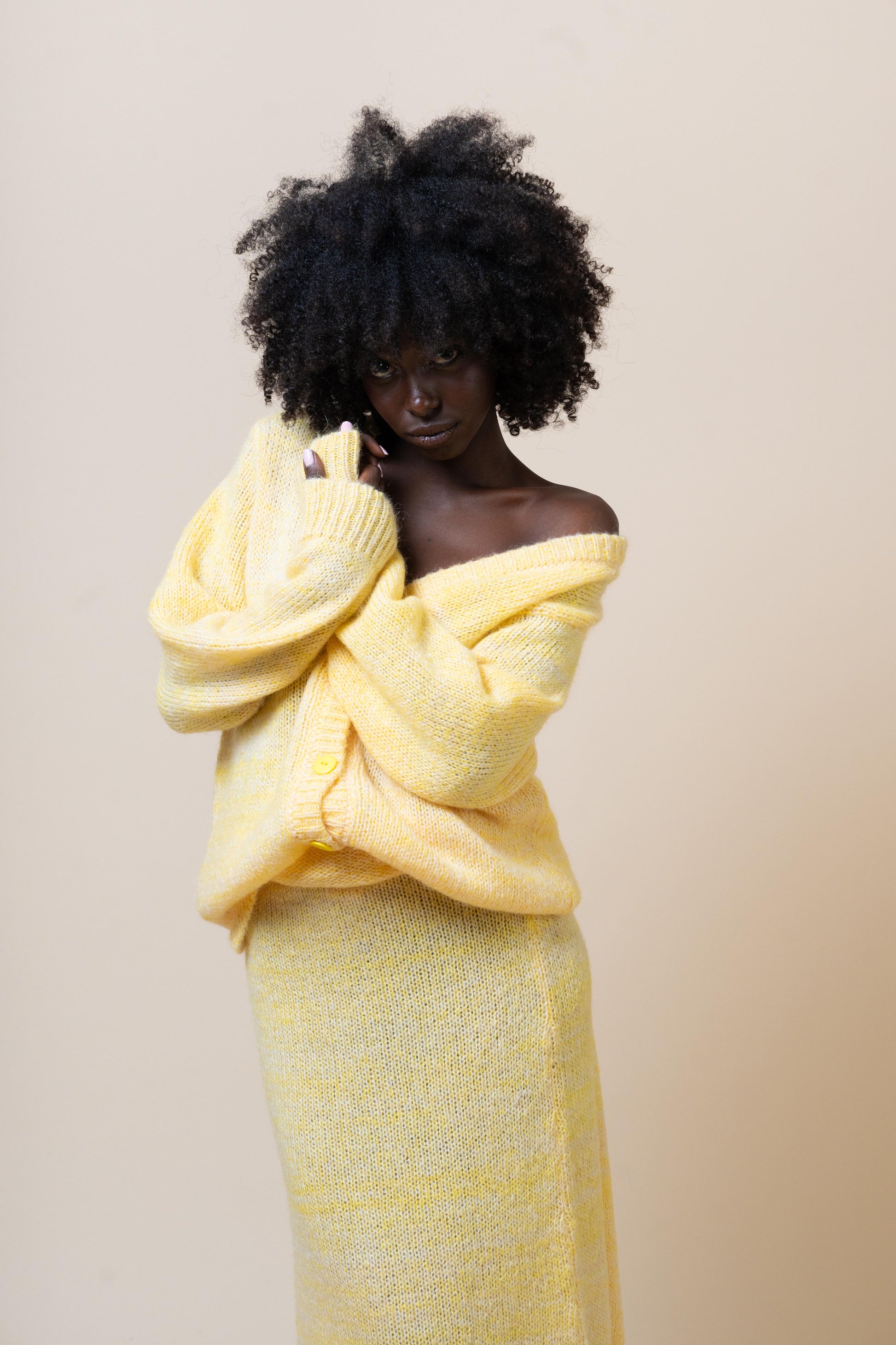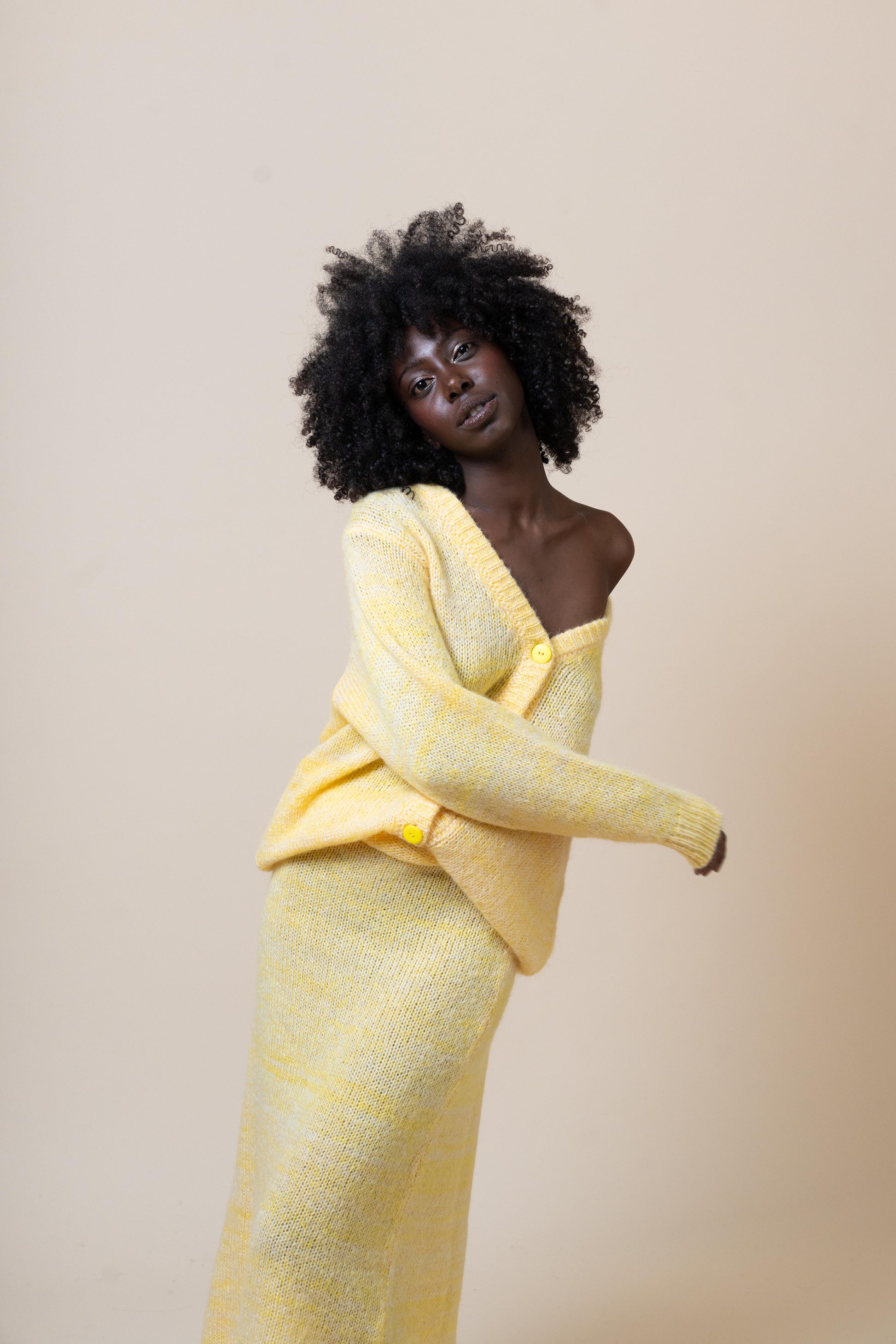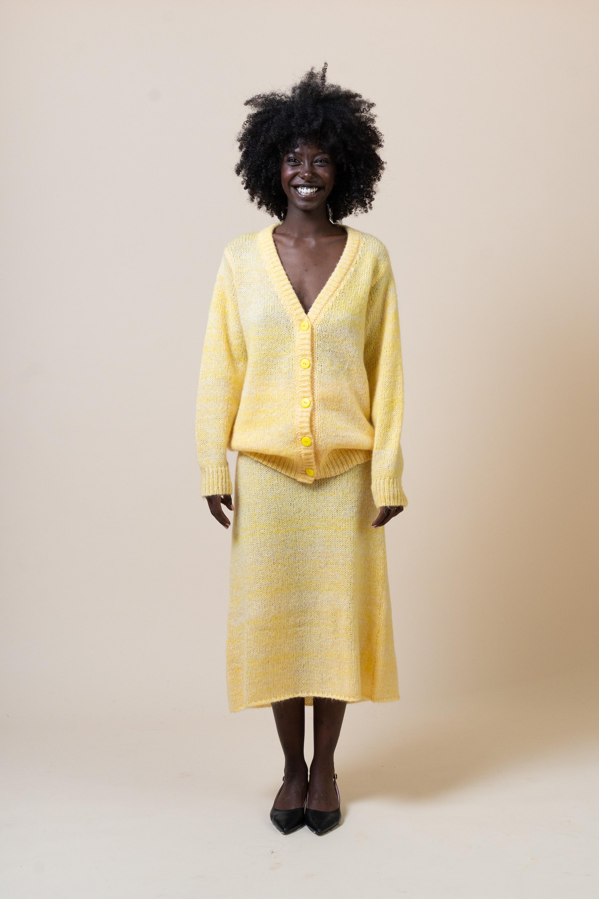💬 Features & Styling: Ho progettato questo capo per tenere calde e avvolgerci. Lo puoi portare aperto o abbottonato, al di sopra della sua gonna svasata, di un pantalone a palazzo o jeans, di una minigonna o un vestito elegante.